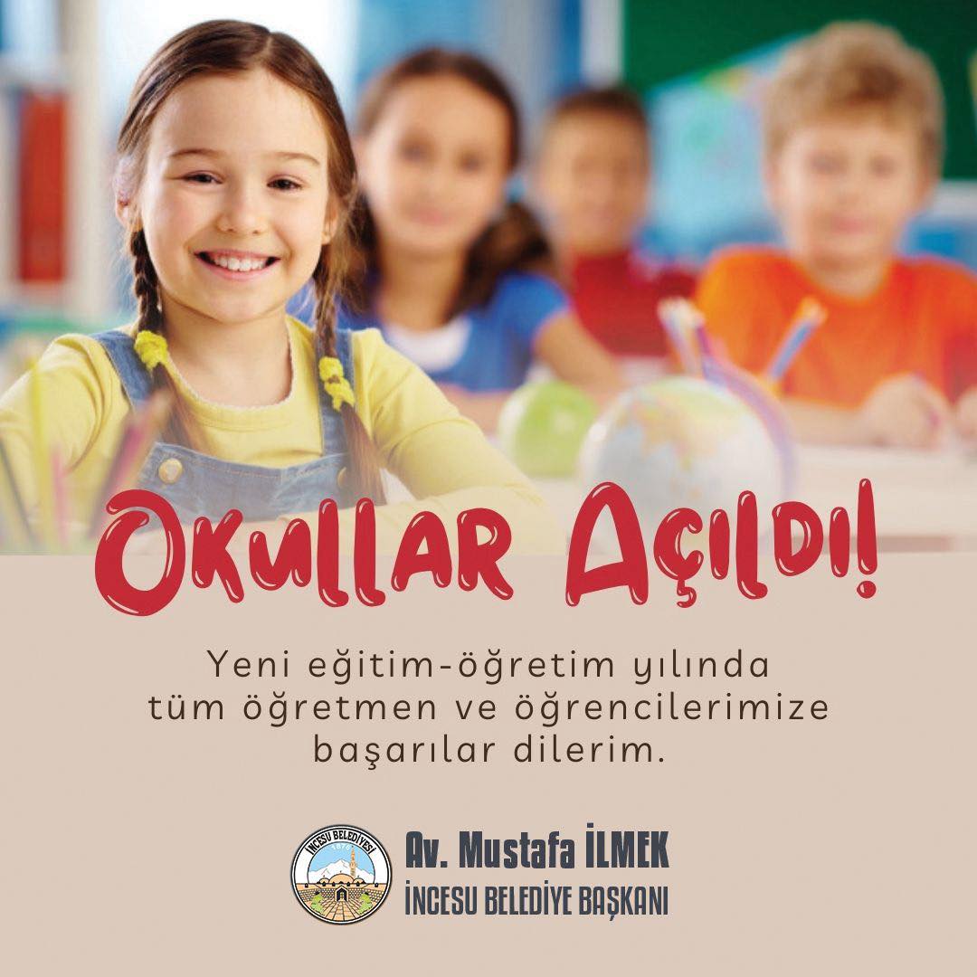 2025-2026 Eğitim - Öğretim yılının geleceğimizin teminatı öğrencilerimize ve kıymetli öğretmenlerimize hayırlar ve başarılar getirmesini diliyorum. Ayrıca yeni dönemin, tüm velilerimiz için de hayırlı olmasını temenni ediyorum. Av. Mustafa İLMEK İncesu Be 08 Eylül 2025, 17:02